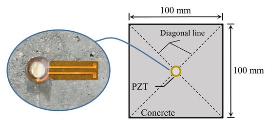 As shown in Figure 1, the PZTs were arranged on two opposite sides of the specimen. Epoxy resin was used to bond PZT to the center of the specimen surface.
