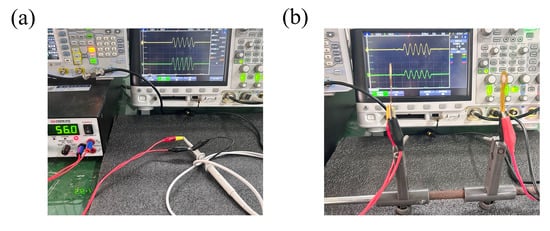 Test of linearity for configuration: (a) test of linearity for the amplified signal; (b) test of PZT in the air.