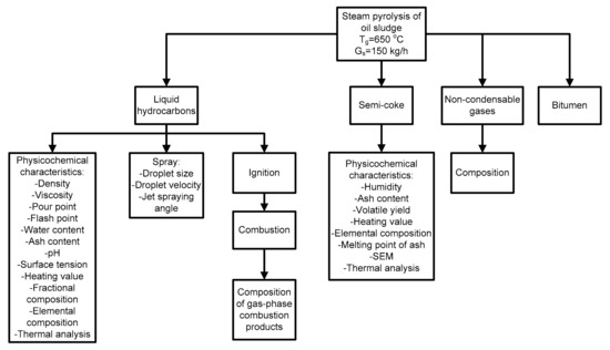 According to [26], liquid hydrocarbons yielded by steam pyrolysis of OS show energy characteristics (combustion heat of 38 MJ/kg, water content of 8 wt%, sulfur content of 1.9 wt%, density of 920 kg/m3) comparable with conventional residual fuel and can be used as heating oil at power facilities. At the same time, an analysis of the literature data shows no currently available comprehensive studies into energy products obtained by thermal conversion methods (in particular, steam pyrolysis).