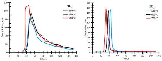 Video recording started when the movement of the rod with a fuel droplet towards the combustion chamber began. The resulting gas-phase combustion products (CO, CO2, NOx, and SO2) were recorded using a once-through gas analyzer. Gas was extracted through a hollow rod (6 mm inner diameter) with the mechanical holder fixed on it. The resulting gas-phase products entered directly into its hollow part and then flew into the gas analyzer by means of a smoke exhauster due to the close rod proximity. The flow rate of gases was 3 L/min. The time period for scanning attained 3 s.