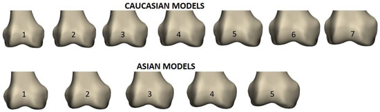 - Dai, Y.; Scuderi, G.R.; Penninger, C.; Bischoff, J.E.; Rosenberg, A. Increased shape and size offerings of femoral components improve fit during total knee arthroplasty. Knee Surg. Sports Traumatol. Arthrosc. 2014, 22, 2931–2940. [Google Scholar] [CrossRef] [Green Version]