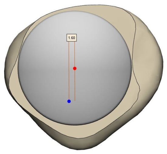 A ‘virtual implantation’ enables the placement of implant components on 3D bone models. The fit can then be assessed by performing different measurements, such as overhang and underhang of the components. The challenge is to place the components in a clinically realistic way. In studies including a high volume of datasets, algorithms were developed to enable an automated placement of the components [16]. However, these algorithms cannot take individual specificities into account, which would influence the component placement during surgery. Furthermore, the quality of the virtual implantation is limited due to the lack of information on the soft tissue situation.