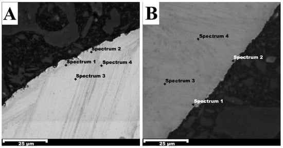 To determine the change in the alloy composition, SEM studies of the samples’ surfaces were carried out using energy-dispersive X-ray spectroscopy (EDS) with the TESCAN MIRA 3 LMU (Figure 4).