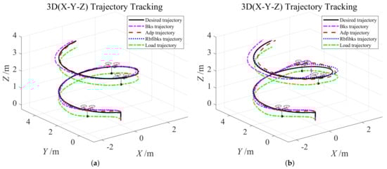 Space trajectory tracking of a quadrotor carrying a load system: (a) weak interference; (b) strong interference.