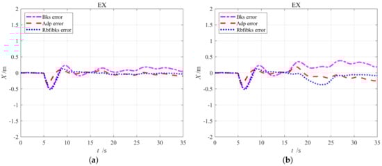 X-axis error of a quadrotor carrying a load system: (a) weak interference; (b) strong interference.