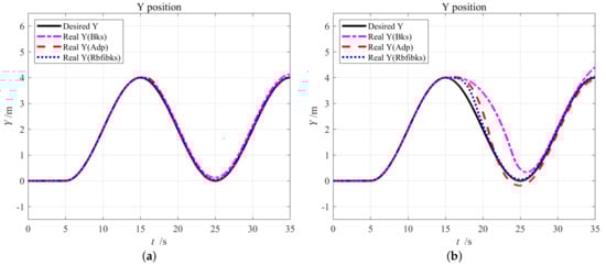 Y-axis change of a quadrotor carrying a load system: (a) weak interference; (b) strong interference.