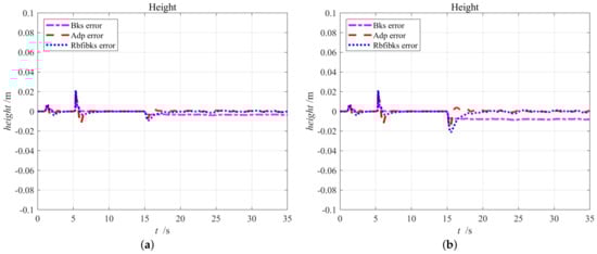 Table 4 below shows the comparison of the average error of different algorithms in height under different intensity interference. It is obvious from the table that the average error of the algorithm proposed in this paper is the smallest, and its performance is significantly improved compared to the integral backstepping algorithm and the backstepping algorithm.