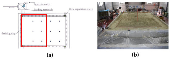 The pool is equipped with 17 wells and a hydraulic system (draining ring system) for the reproduction of a phreatic aquifer that allows the variation of groundwater level (Figure 1a).