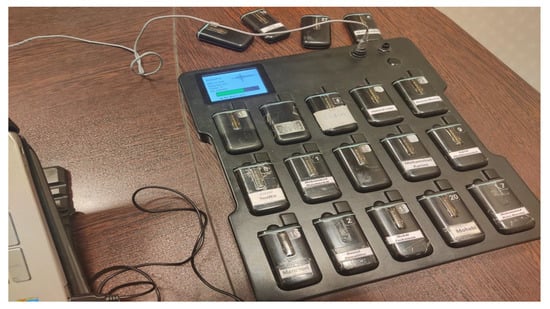 For the post-session, tracking units were collecting from players; after making sure each unit was working, we placed them on the docking station. Data units automatically were downloaded into docking memory and then deleted from units to prepare for the next session. After 10 min, units were turning off automatically (Figure 3).