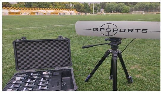 All players’ activities in training sessions and matches were recorded with GPS (GPSPORTS systems Pty Ltd., Canberra, Australia, Figure 1). GPS-based tracking systems for professional athletes, model SPI High Performance Unit (HPU), features include 15 Hz position GPS, distance, and speed measurement; accelerometer: 100 Hz, 16 G Tri-Axial-Track impacts, accelerations, and decelerations as well as data source BL; Mag: 50 Hz, Tri-Axial; dimensions: smallest device on the market (74 mm × 42 mm × 16 mm); robustness; SPI HPU and weight 56 g. Previous studies have shown that the GPS unit was tested for having a very high accuracy demonstrated validity and inter-unit reliability (coefficient of variation = 0.90%) [43,44,45,46]. Collecting data during training and matches sessions was possible provided favorable weather and GPS satellite status.