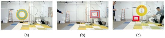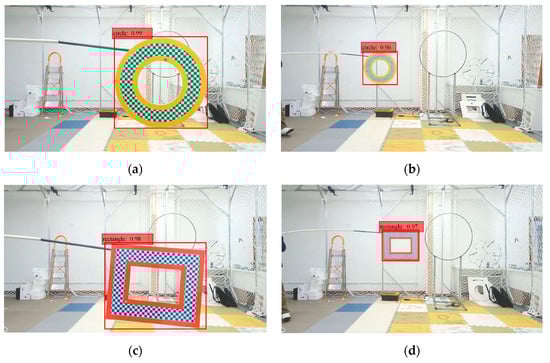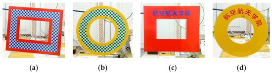 In this study, a series of target-detection-comparison experiments and indoor target-tracking experiments were designed for verification. A visual motion-capture system was employed to calibrate the true value of the target’s trajectory. The motion-capture system (MCS) was composed of eight cameras. It can cover the space experiment range of 4.7 m × 3.7 m × 2.6 m and can achieve posture tracking and data recording with a refresh rate of 260 Hz. The moving targets in the experiment were rectangular and circular targets, as exhibited in Figure 11.