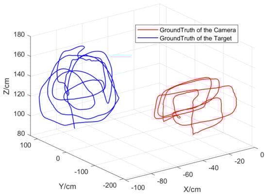 The trajectory of the target and the camera obtained by the motion−capture system.
