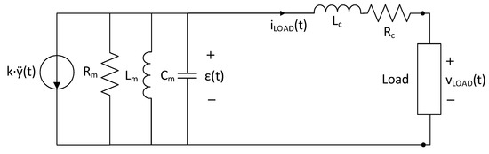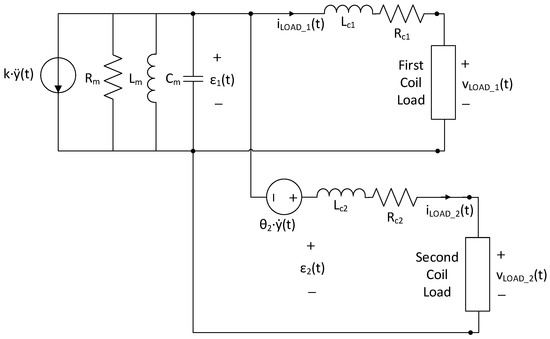 ) is considered, according to Equations (9)–(11) the double coil electromagnetic harvester can be modeled by the equivalent electric circuit in
