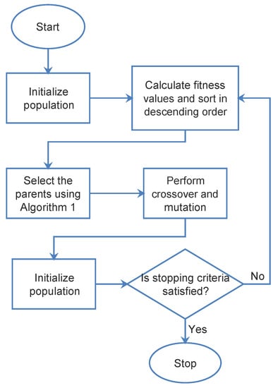 The strategy employed in this study is to enhance the highly exploitative property of GA by modifying the selection algorithm in such a way that the entire solution/chromosome set, including the fitness values, is considered rather than only the fitness value being used as a selection criterion as was previously done. On the other hand, we note that there have been several proposals in the literature for improving GA by specifically modifying the selection algorithms used for selecting parents who will participate in crossover operation [,]. Our proposal is different since it only involves a simple selection of individuals sorted in a decreasing order of fitness values making sure that all selected individuals are unique. Although this can help in highly exploitative search, it reduces diversity in the population, which makes the algorithm unable to search globally in the search space.