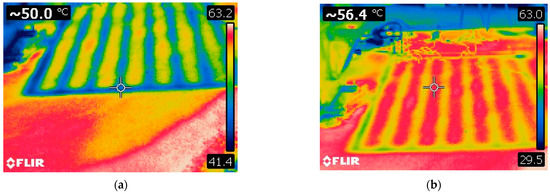 (a) Thermographic image of the area located (a) above the CSA and (b) between the CSA pipes.