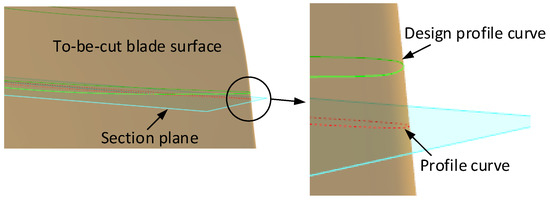 For the free-form surface of a blade, the profile curves on the design blade sections are the basis of controlling the surface shape (Figure 1a). The blade surface is constructed by lofting these profile curves. That is to say, the to-be-cut blade surface can be reconstructed in the same way. Thus, it is important to find a group of appropriate profile curves. The to-be-cut blade surface is represented by .