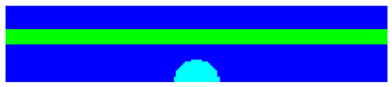 The nonlinear dynamic finite element analysis program LS-DYNA was used to analyze the dynamic response of the shell along the thickness and length directions. The calculated explosive density was 1.65 g/cm3, the shape and equivalent of explosion were consistent with that in the actual experiment, and the explosive was detonated at the middle of the cylindrical shell. The Arbitrary Lagrangian Eulado matter algorithm was applied for the explosive and air units in LS-DYNA [26], and the Lagrangian algorithm was used for the cylindrical shell units. The ALE and Lagrange grids overlapped and crossed each other during modeling, and the fluid−structure coupling simulation of the structural mechanical loading by explosive products in the explosion process was realized by the coupling of Lagrange and ALE. According to previous experimental measurements, the detonation velocity of TNT with a density of 1.65 g/cm3 was about 7.8 km/s, while the detonation pressure was 176 GPa [27]. The steel cylinder was made of ideal elastic-plastic material, with a yield strength of 1000 Mpa, while the strain rate and strain strengthening effect were not considered. Figure 5 shows the numerical model diagram for simulating the cylinder deformation under an explosive load.