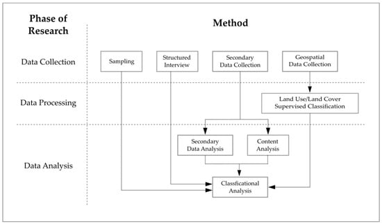 In the data processing phase, the related literature was analyzed by means of secondary data analysis, while the regulations on DRM and land management and administration were analyzed using content analysis. Moreover, other data and the processed information from above were analyzed by means of classificational analysis. Having developed the research’s conceptual framework based on CDR concepts and the Japanese experience, the acquired data and information were then classified. The output of the analysis was the existing gaps on CDR development in the Lembang Fault area, as well as the recommendations for developing CDR in the Lembang Fault area. See Figure 6 for the methodology of this research.