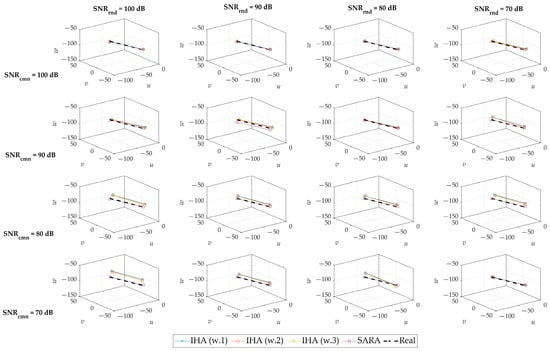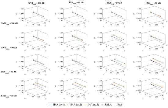 The results of the simulations detailed in Section 2.3.2, Section 2.3.3, Section 2.3.4 and Section 2.3.5 are here presented. Each subsection refers to a specific set of simulations. For each set of simulations, the angular and linear dispersion parameters, as well as the rms distance values between the exact and estimated AoRs, were calculated. This process was repeated for each algorithm tested, that is, the IHA, with three different weighting factors (Table 2), and SARA. In the following, the main results of these analyses are presented, while the complete sets of results are reported in Appendix A for the sake of conciseness.