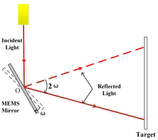 Currently available optical scanning methods for imaging LIDAR consist of flash, optical phased array (OPA), mechanical rotating, MEMS mirror scanning, etc. [9]. Flash LIDAR is of solid form, so in a strict sense, it is not an optical scanning form. It directly illuminates the surface of the object to be measured through emitting a surface laser, and the detector composed of a pixel array realizes the reception. Each independent pixel unit only can receive a small part of the echo power, which limits its ability to image far targets [10,11]. OPA LIDAR is of solid-state scanning form with no internal mechanical drive structure. It uses array laser sources and works by the principle of multiple beams interference. By controlling the phase difference of each sub-light source, the main beam direction can behave scanning. OPA technology requires that the size of the sub-light source of the array must be less than half of the working wavelength, which results in great difficulty with chip processing. At the same time, the main beam is easily affected by the side lobe beam caused by interference, which causes energy leakage and affects the detection resolution [12]. The mechanical rotary type is relatively mature, but it has shortcomings of high-power consumption, large volume, cumbersome optical structure, and complicated assembly, resulting in low production efficiency and high cost [13]. On the contrary, MEMS technology directly integrates the micro-scanning mirror into the silicon chip, which is only a few millimeters in size. The mirror rotates through electrostatic, electromagnetic, electrothermal, piezoelectric or other driving methods, which greatly reduces the size of the system and increases production efficiency. The study of LIDAR based on MEMS mirrors is significant for the development of the new generation of miniaturized, low-cost imaging LIDAR [14,15,16].