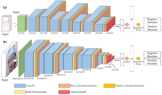 Structure of physio-emotion classification model (a) and facial-emotion classification model (b).