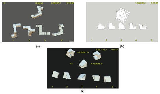At the moment, there are three types of tests in the application: the MRT, MCT, and PSVT test types, although the Heinrich Spatial Visualization Test [41] is in process of being implemented in it. The MRT, MCT, and PSVT test types are shown in Figure 1.