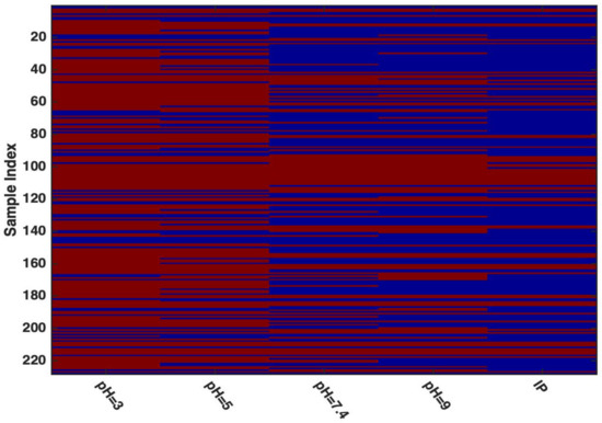 As described above, a total of five different datasets were available, four associated with different pH conditions (3, 5, 7.4 and 9) and one with the IP.