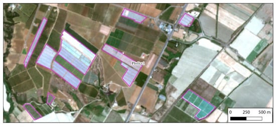 There are many techniques for quantifying agricultural plastic surfaces (APSs), but one of the most useful is spatial-data management provided by Geographic Information Systems (GIS). In particular, the use of satellite image classification exclusively or integrated with digital photointerpretation [24,25,26] is increasingly becoming the main component of rural land studies at the local level as well.