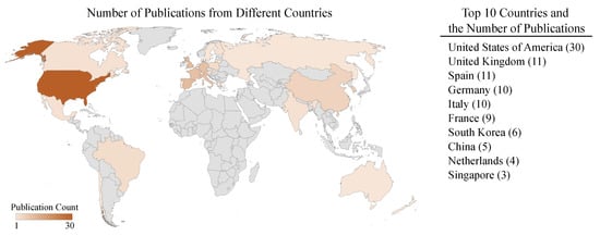 Figure 7 presents the number of publications related to XAI from different countries of the world. Here, the countries were determined based on the affiliations of the first authors of the articles. The USA is the pioneer in the development of XAI topics and is still in the leading position. Similarly, several countries in Europe are following and have developed an increasing number of systems considering XAI. Based on the number of publications, Asian countries are apparently still quiescent in research and development on XAI.