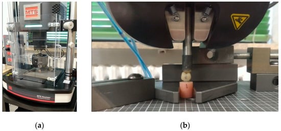 In order to test the characteristics of the resistance to static and dynamic loads an MTS Acumen 3 Electrodynamic Test System testing machine equipped with a 3 kN load cell was used. The load was applied by means of a steel cylinder (Ø7 mm) with a composite (Filtek Supreme XTE 3M Espe) hemispherical end until failure of the sample. The cylinder was replaced for each sample. The sample was supported by grippers, as shown in Figure 6b, and aligned to ensure the axis of the resin cylinder and the axis of the loading steel cylinder were consistent, guaranteeing repeatability and equal testing conditions throughout the test campaign. Before testing the specimens, the system was dynamically calibrated in the range 0 to 20 Hz by the internal utility of the machine control software MTS TestSuite Multipurpose Elite.