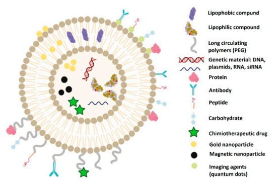 - Xing, H.; Hwang, K.; Lu, Y. Recent Developments of Liposomes as Nanocarriers for Theranostic Applications. Theranostics 2016, 6, 1336–1352. [Google Scholar] [CrossRef]