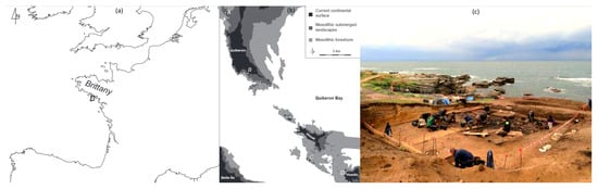 The settlement of Beg-er-Vil at Quiberon (Brittany, France) [51] provides remarkable evidence of the lifestyles of the last maritime hunter-gatherers along the Atlantic coast, between 8200 to 8000 BP (Figure 1).