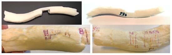 A further scope of this work was 3d printing. At 1:1 scale, the printing of this mesh does not allow the correct readability of cuts. For this reason, we printed only the bone mesh, without the cuts, and then annotated it to show the cuts and their references (Figure 13). However, with the very detailed 3D meshes of cuts from digital microscope, and positioned on the bone, it would be also possible to print the whole on a bigger scale that would allow scientists to read the cuts easily.
