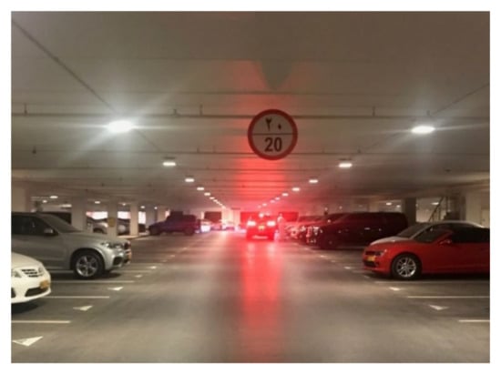 According to the practice in the Gulf region, particularly in Oman, it was observed that most of the parking lots have a speed limit of 20 km/h (see Figure 7). However, during an accident, the car speed can exceed this limit unintentionally. After an extensive study on the car speed limit to be used for the FE model, it is decided to set an initial velocity of 40 km/h for providing the design guideline of the column at parking places. In addition to this car impact velocity, the FE models were run for initial car speeds of 10, 15, 20, 25, 30, 35, 50 km/h, and 60 km/h for parametric study.