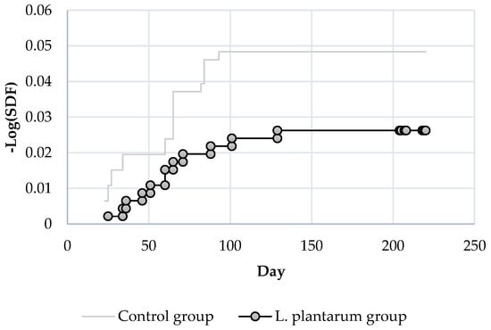 In order to establish if the use of L. plantarum could have a preventive effect in reducing the number of cases of EFB based on the time elapsed from the end of the treatment period, the Log-Rank test has been applied to different time-frames, excluding from the analysis all the other cases that emerged during the trial. The p-values are reported in Table 3.