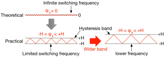 Substituting the previous expressions into (41) and considering the switching frequency , the hysteresis limit H is calculated by (43) to ensure a maximum switching frequency , where the duty cycle is calculated from (9) and depends on , , , , and n.