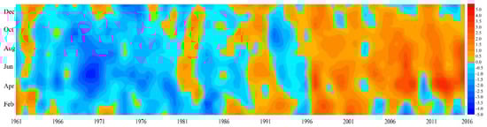 Variations in the monthly soil temperature anomaly (°C) during the period 1961–2015 observed by CMA in the SAM.