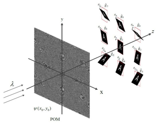 where λ is the wavelength and is the distance between the center point on the tilted input plane and the center point on the output plane. Assuming N pieces of the target image being (𝑥′, y′), n = 1~N, each image corresponds to the different angles of the inclination θ𝑥. The individual phase information was acquired through MGSA calculation. When the value above is substituted in Equation (1), it could be simplified as Equation (3), shown below: