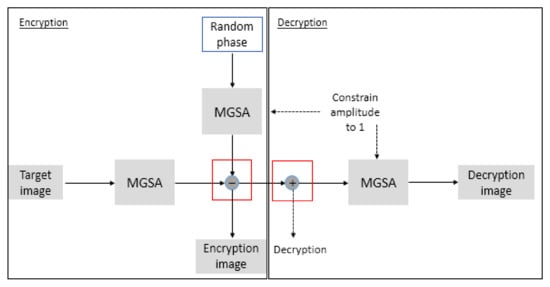 - Step 2: Multiply the encryption image amplitude and the decryption phase signal for the MGSA calculation and modulate the amplitude to 1.