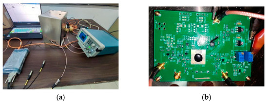 The test system. (a) The overall test system. (b) The analog amplifier circuit board.