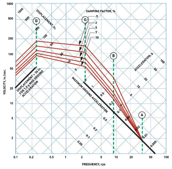 - The response spectra generated by the seismic load should cover the design response spectrum shown in Figure 3. However, for the frequency of up to five points, the response spectrum generated by the seismic load may have a smaller value than the design response spectrum;