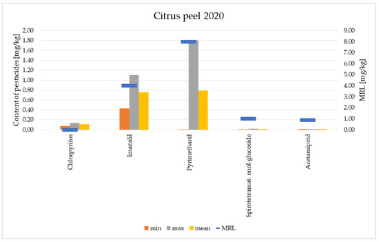 Content of pesticides in peels of citrus fruits from the harvest of 2020.