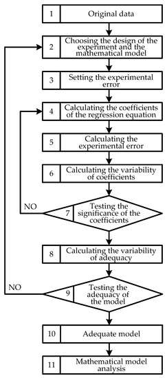 The algorithm of conducting the research by method of active design of the experiment is presented in graphic form in Figure 2.