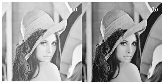 A non-binary figure in Figure 8a is also employed as the object to test the performance of the method. Another phase distribution is used to make the object wave a complex value. Using a similar procedure as the first simulation case, the image is recovered and shown in Figure 8b. The brightness of the reconstructed image is lower than the original image of Figure 8a because of the energy loss in the process of spectra filtering. The two images of Figure 8a,b have almost no difference on the whole.