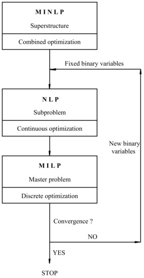 - Duran, M.A.; Grossmann, I.E. An Outer-Approximation Algorithm for a Class of Mixed-Integer Nonlinear Programms. Math. Program. 1986, 36, 307–339. [Google Scholar] [CrossRef]