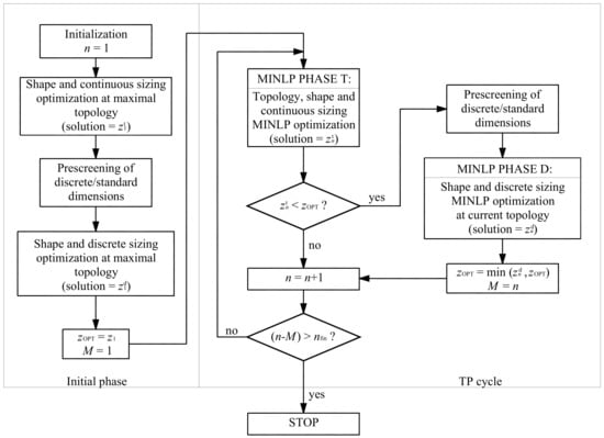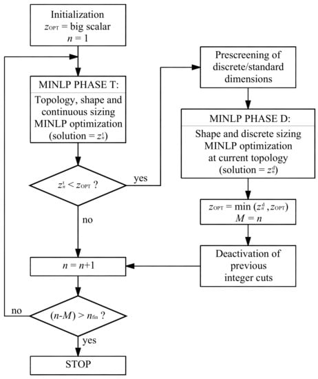 - Kravanja, S.; Kravanja, Z.; Bedenik, B.S. The MINLP approach to structural synthesis, Part I: A general view on simultaneous topology and parameter optimization. Int. J. Numer. Methods Eng. 1998, 43, 263–292. [Google Scholar] [CrossRef]