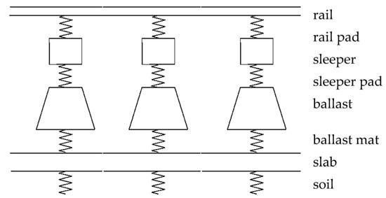Track model consisting of rail, rail pad, sleeper, sleeper pad, ballast, ballast mat, ballast plate and continuous soil.
