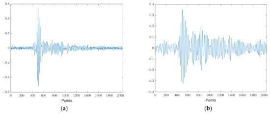 To construct the database, 5839 signals were acquired for each flaw and, subsequently, 2048 points were extracted with the flaw signal (Figure 1). The number of each weldment flaw is presented in Table 2.