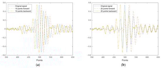 Time shifting of signals: (a) 10 points (0.2 μs) forward and backward shift; (b) 20 points (0.4 μs) forward and backward shift.