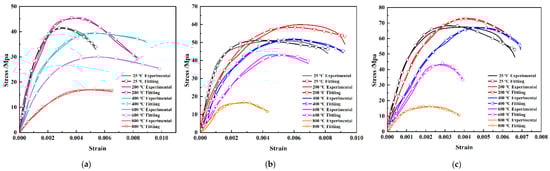 Compared with the experimental data, it was determined that the model can describe the stress–strain curves of polypropylene concrete under different conditions well. The temperature effect and strain rate effect shown by the fitting curves are consistent with the experimental data.